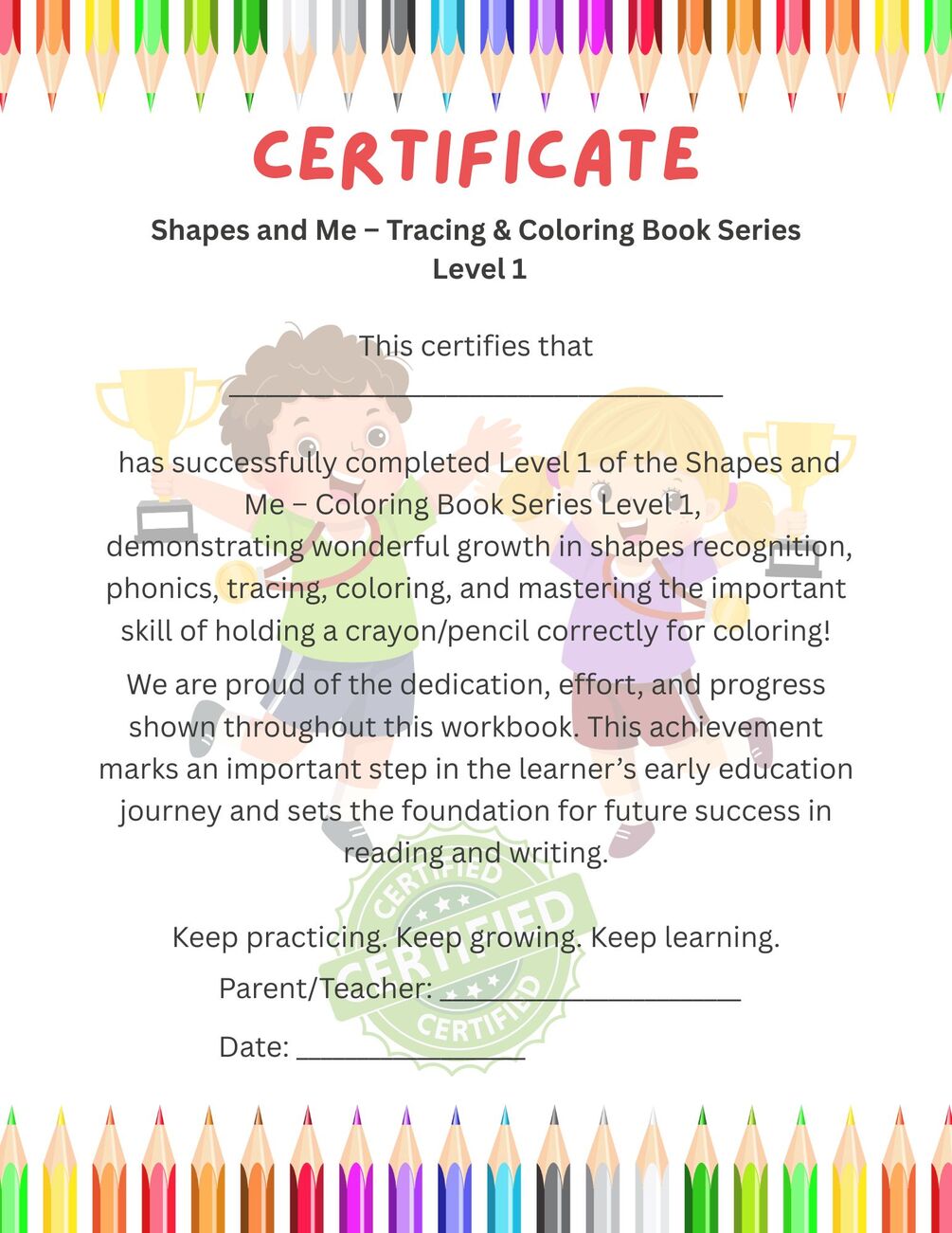 Shapes & Me is a beautifully designed printable workbook that introduces preschoolers to basic and slightly complex shapes through tracing and coloring. Perfect for home use, classroom learning, or homeschooling.